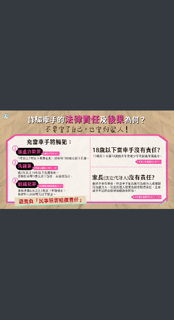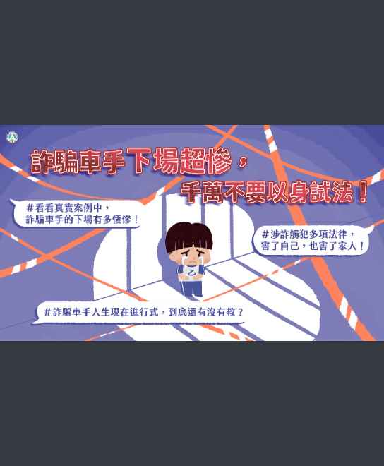 轉知教育部「詐騙車手下場超慘,千萬不要以身試法!」宣導文宣